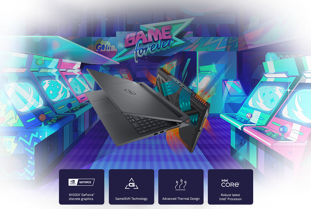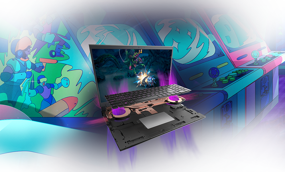 מחשב נייד חזק על מלא, מאפשר משחק אינטנסיבי וריבוי משימות בכל הכוח,